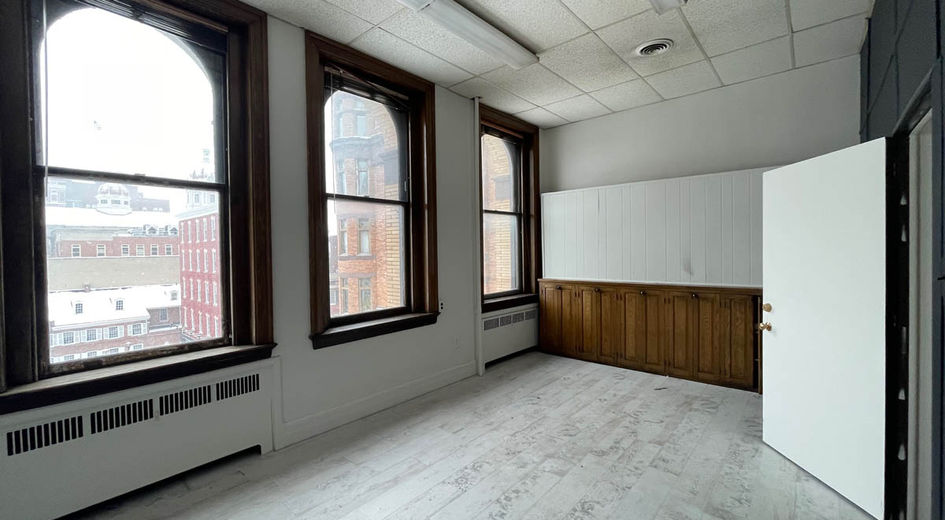 The 2nd floor is 3,522 SF, has been completely redeveloped and was formerly occupied by The Grotto co-working space. It includes expansive open work areas, four private offices, a large meeting room, two restrooms, and a small kitchenette. The open spaces feature wooden floors, high ceilings, and abundant natural light from the large windows that overlook the square.