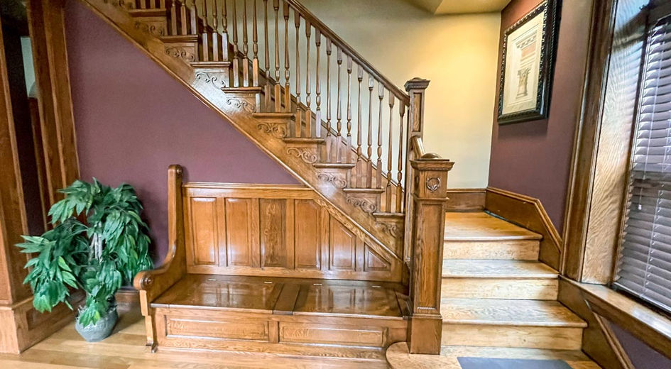 Constructed in 1890, this historic building showcases exceptional architectural character, including custom cherry and chestnut woodwork along with stained-glass windows on the first floor. Over the years, it has been thoughtfully renovated and restored to highlight its craftsmanship.