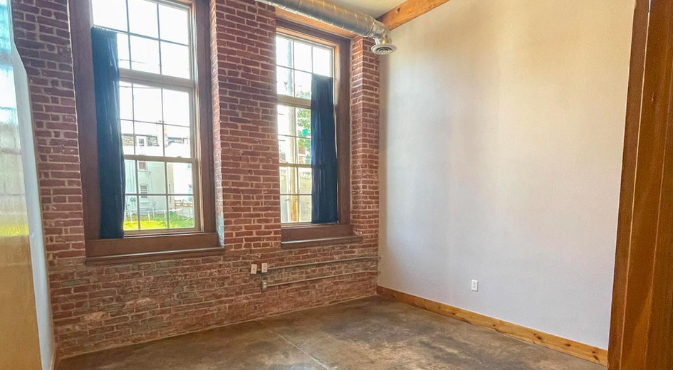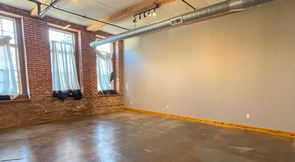 This suite features multiple private offices, a conference room, a training room, a reception area, a kitchenette, and a private restroom. The space boasts industrial-chic finishes, including exposed interior brick, high ceilings, spiral ductwork, polished concrete floors, and large windows. The condo includes eight (8) parking spaces in the parking garage.